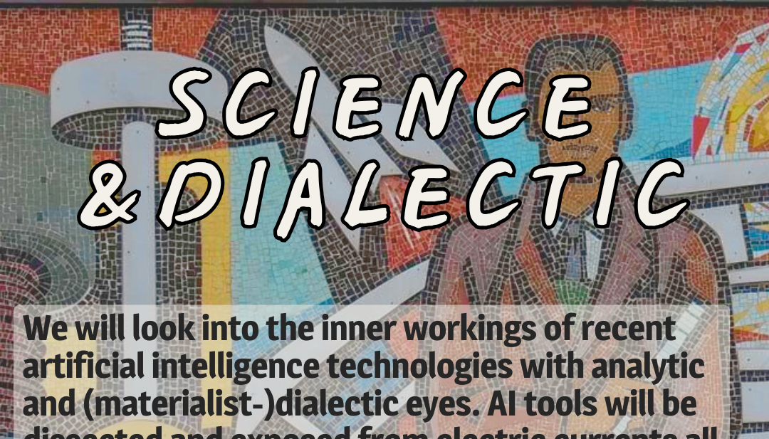 Diesmal eine englischsprachige Veranstaltung mit Flüsterübersetzung auf Deutsch – wir freuen uns! Science & Dialectic im Kiezhaus!